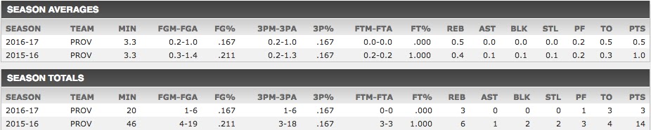 Council was billed as a shooter when he arrived at PC and all but 1 of his 19 career shots were taken from behind the arc, unfortunately, he was never able to play his way into any significant minutes for the team. This now makes 2 open scholarships for the 2017-2018 season for the Friars. I would urge them to look for some shooting at the two spot as the two Big Frosh bodies coming in should help us out down low.
