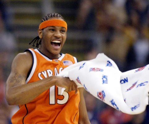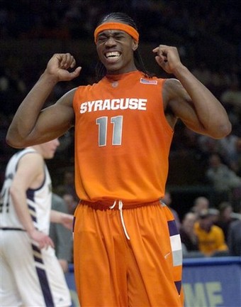 He was ridiculous that year as a freshman, carrying a team starting one senior (Keuth Duany), two sophomores (Hakim Warrick and Craig Forth), and two freshamn (Carmelo and Gerry McNamara). Check out his highlights from that season. This will be the one and only time that I give any props whatsoever to Syracuse. How about you throw it down once in a while though Nancy Boy. There, that’s better.