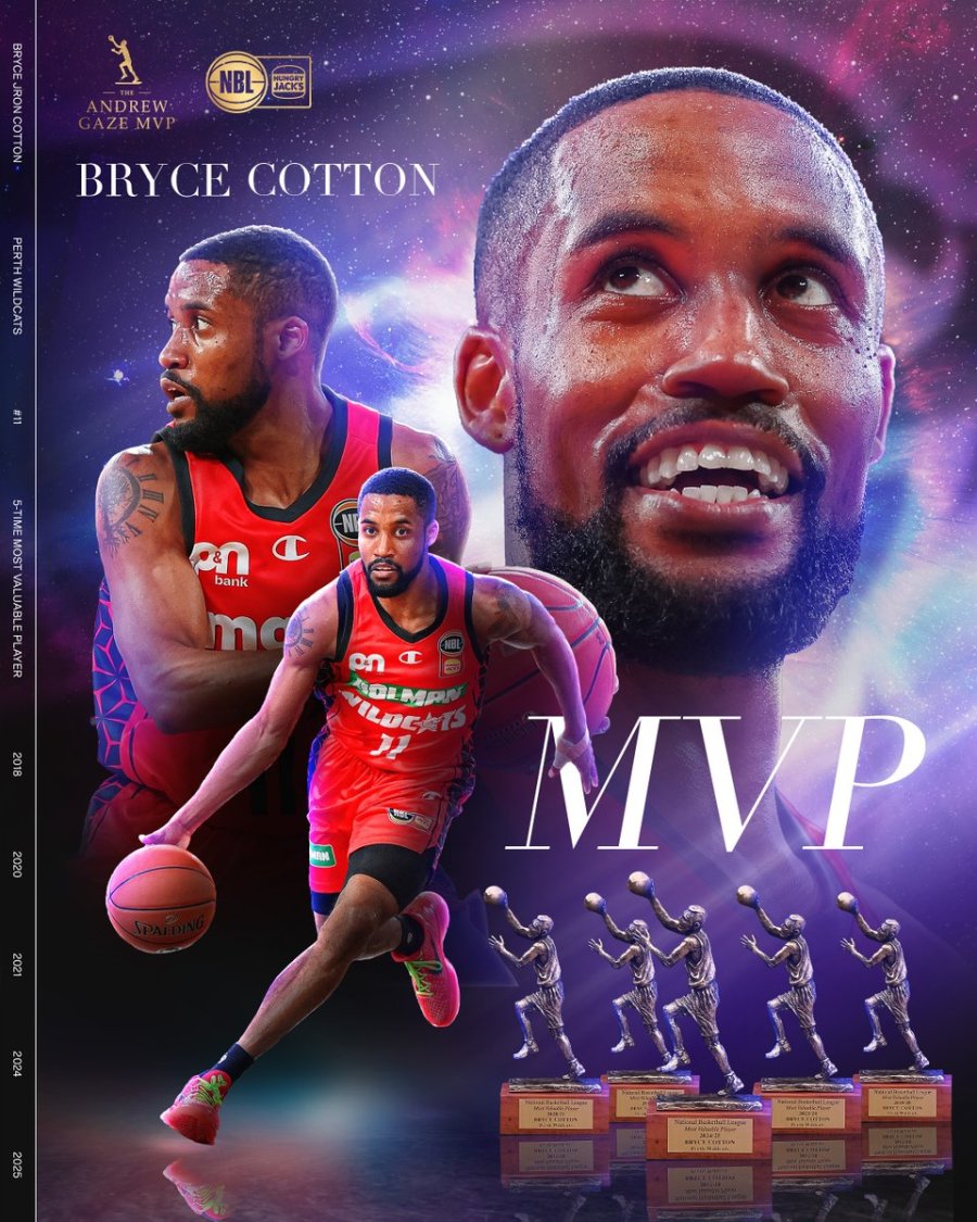 A year after winning the League MVP Award, Bryce Cotton was named the Perth Wildcats' Team MVP this season (the Gordon Ellis Medal) for the second time, along with winning his second Championship with the franchise. Cotton has now received the trio of MVP awards in the Australian league.  The League MVP, the Grand Final …